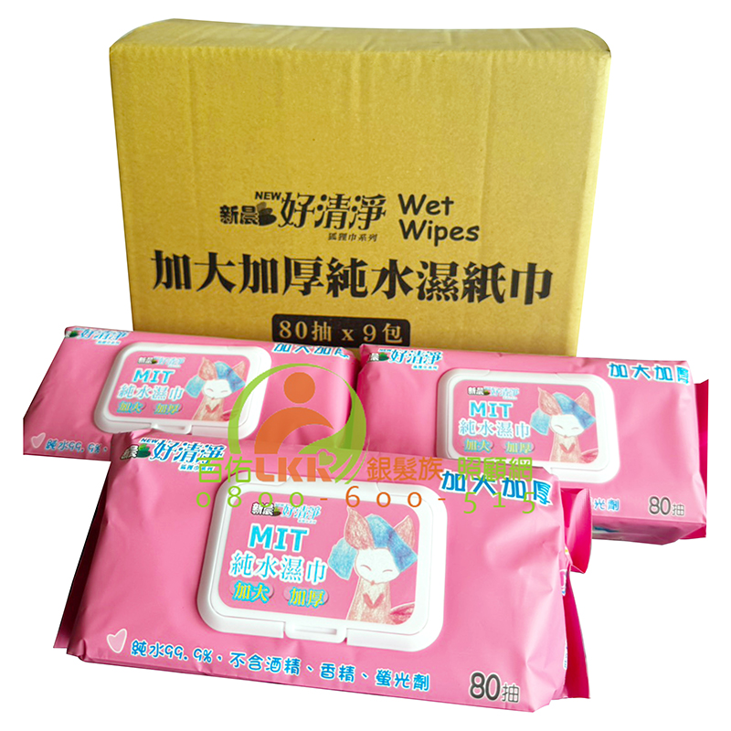 臺灣製造 新晨好清淨濕紙巾 一箱9包出貨 超大張 純水濕紙巾80抽有蓋 加大加厚