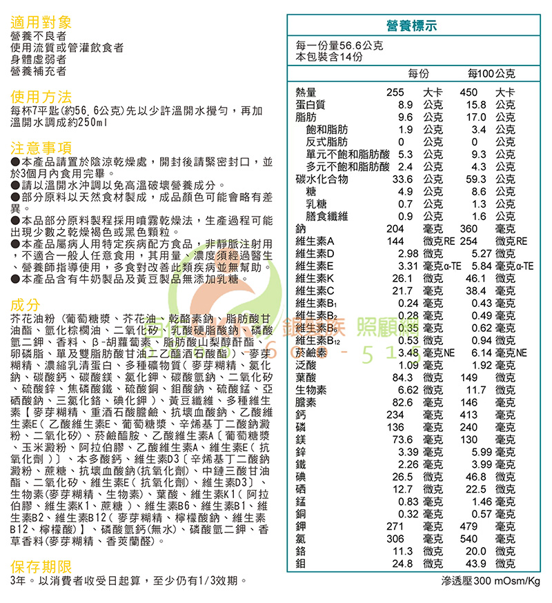 ◆市售NO.1,權威醫師推薦◆100%濃縮乳清蛋白,比一般牛奶蛋白更好吸收◆醫學中心指定2,九成家屬滿意3◆美國FDA認證A級乳源,萃取牛奶中20%精華濃縮製成◆蛋白質熱量佔比14%,提供完整必需胺基酸◆油脂來源為富含單元不飽和脂肪酸的芥花油◆未添加動物性油脂,奶素可食 ◆維持消化道機能:添加膳食纖維,促進腸道蠕動與健康◆口飲/管灌皆適用,調整體質,改善營養狀態◆本公司產品皆已投保南山產品產物責任險2000萬